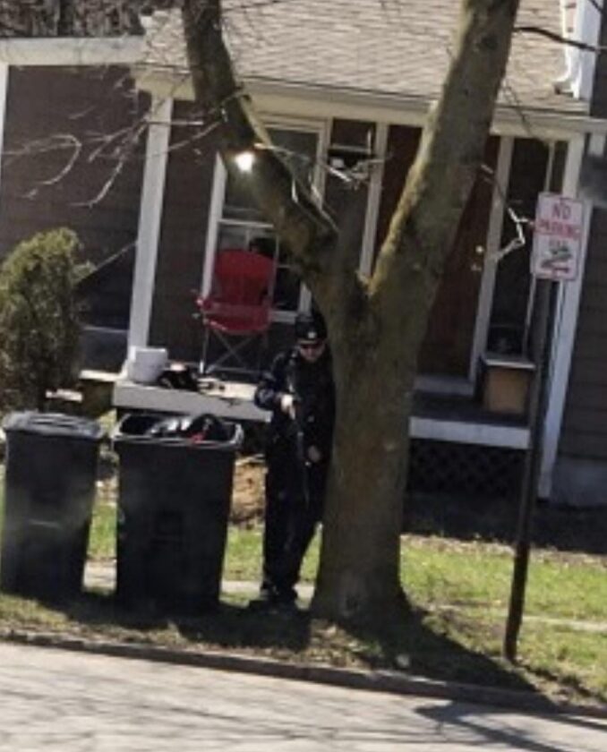 Submitted and staff photos Law enforcement is pictured on White Street on Wednesday during the shelter in place that lasted about 12 hours.