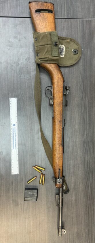 The rifle found by police that was in possession of Brian J. Sheldon on Tuesday.