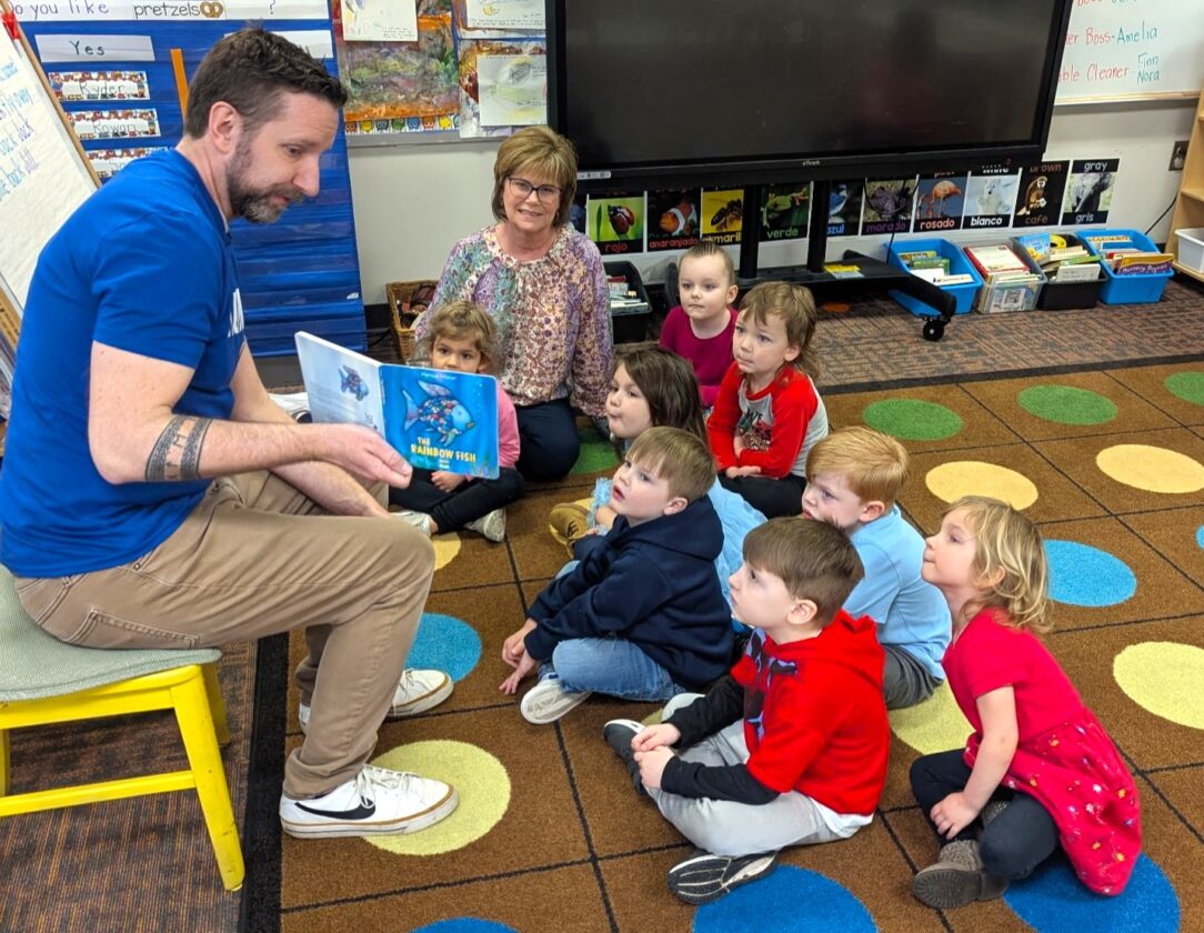 United Way of Chautauqua County Community Impact Manager Eric Rinaldo reads to school children in Fredonia in this picture from UWCHQ's 2025 Literacy Week. The week-long initiative is presented in partnership with CHQ Professionals Group and the Northern Chautauqua Community Foundation which also provides a grant to purchase the books which students get to take home.