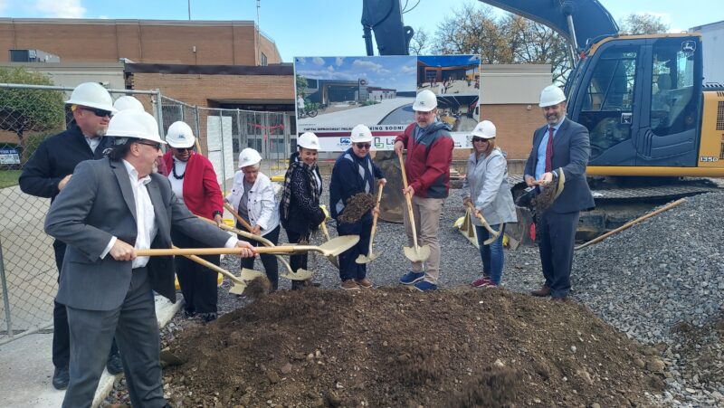 Dunkirk Board of Education members, district officials and representatives from project engineers LaBella gathered in front of the high school on Sixth Street for the “shovels in ...