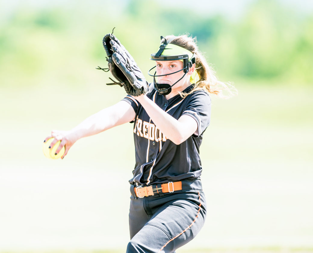 OBSERVER File Photo Pictured is Fredonia pitcher, Hannah Cybart, who recently was named to the CCAA West I First Team All-Stars. In her final season at Fredonia, Cybart’s efforts from the circle have been rewarded as she received the Pitcher of the Year award for CCAA West I softball for the 2017 season.