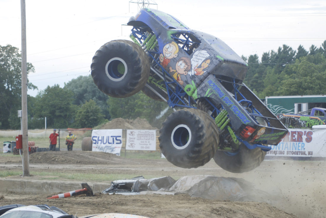 The Aftershock Monster Truck Races took over the Chautauqua County Fair on Saturday night at the grandstand. Pictured is Nothing But Trouble in action Saturday.