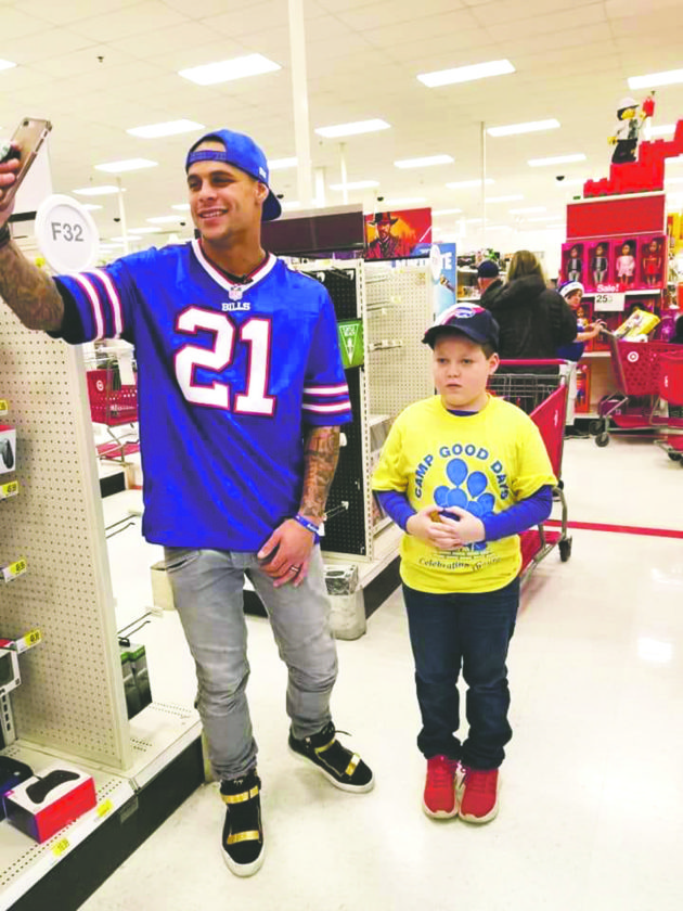 Dunkirk’s Mason Schrantz, 9, (right) was taken out Christmas shopping by Buffalo Bills safety Jordan Poyer (21) at Target earlier this week. Schrantz was diagnosed with Stage IV Lymphoma a year ago this week. He is a patient at Roswell Park Comprehensive Cancer Center, as well as John R. Oishei Children’s Hospital. Schrantz is still undergoing chemo treatment but has been declared cancer-free. He was also chosen by Roswell to light the Christmas tree.