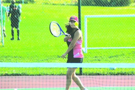 OBSERVER Photos by Anthony Dolce Fredonia’s Selin Arnavut returns the ball in a singles match against Southwestern on Thursday night.