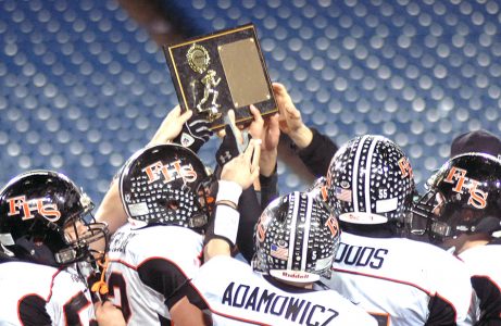 OBSERVER File Photo by Scott Kindberg The Fredonia Hillbillies raise the Section VI championship plaque after beating Southwestern, 12-10, during the 2010 Class C title game at Ralph Wilson Stadium in Orchard Park.