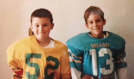 In photo above left, current Jamestown High School football coach Tom Langworthy, left, is pictured with Nick Sirianni, right, during their childhood on the city’s west side. Second, Langworthy, second from left, is pictured with Carlson, second from right. They are flanked by Langworthy’s wife Amy, far left, and Carlson’s girlfriend Allie Rogers, far right.