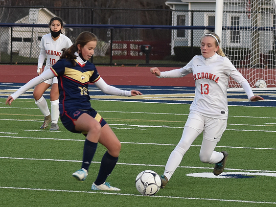 - Falconer/Cassadaga Valley’s Michaela Olson (12) and Fredonia’s Ella Coopman meet