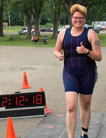 Submitted Photo Beth Kopay is pictured at the Big Fish Triathlon at Lakeside Park in Mayville on Saturday. Kopay was presented with the Rose Award.