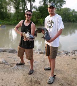 The weigh-in site was at the Hanover boat launch. There were 10 teams signed on for this first-time event and it didn’t take long for the largest catfish of the day to be caught, right across from the weigh-in site. Bob Kenyon of Boston, New York used a slip sinker rig complete with 20-pound test line and a 5.0 hook baited with a creek chub head to catch what proved to be the biggest catfish of the event, weighing in at 18 pounds. Bob had to deal with a lot of snags and frustration as that was the one and only catfish of the day for him. Marty Stevens brought in four catfish for a total weight of 24 pounds, which was good enough for third-place prize money of $100.