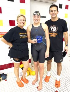 - Submitted Photo Tori Spacciapolli, center, took first place in the 100 breaststroke and 200 individual medley is pictured with Fredonia head coach Joanne Lotter, left, and assistant coach Steve Romans.