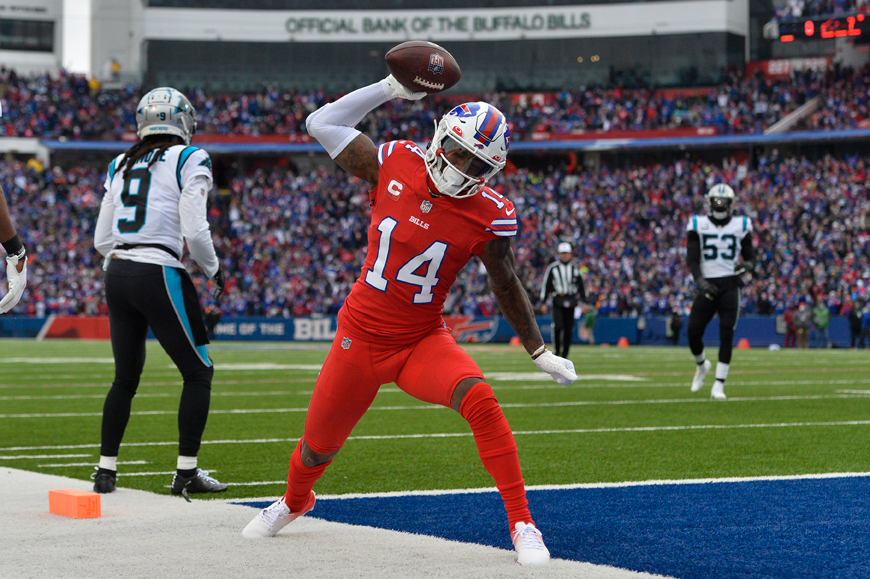 - AP Photo Buffalo Bills wide receiver Stefon Diggs (14) celebrates after scoring a touchdown during the first half against the Carolina Panthers on Sunday in Orchard Park.