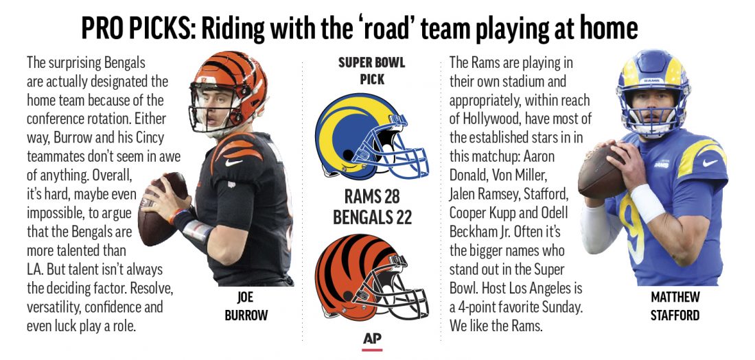 LA has the experience and, appropriately, within reach of Hollywood, most of the established stars in this matchup: Aaron Donald, Von Miller and Jalen Ramsey on defense; Matthew Stafford, Cooper Kupp and Odell Beckham Jr. on offense.