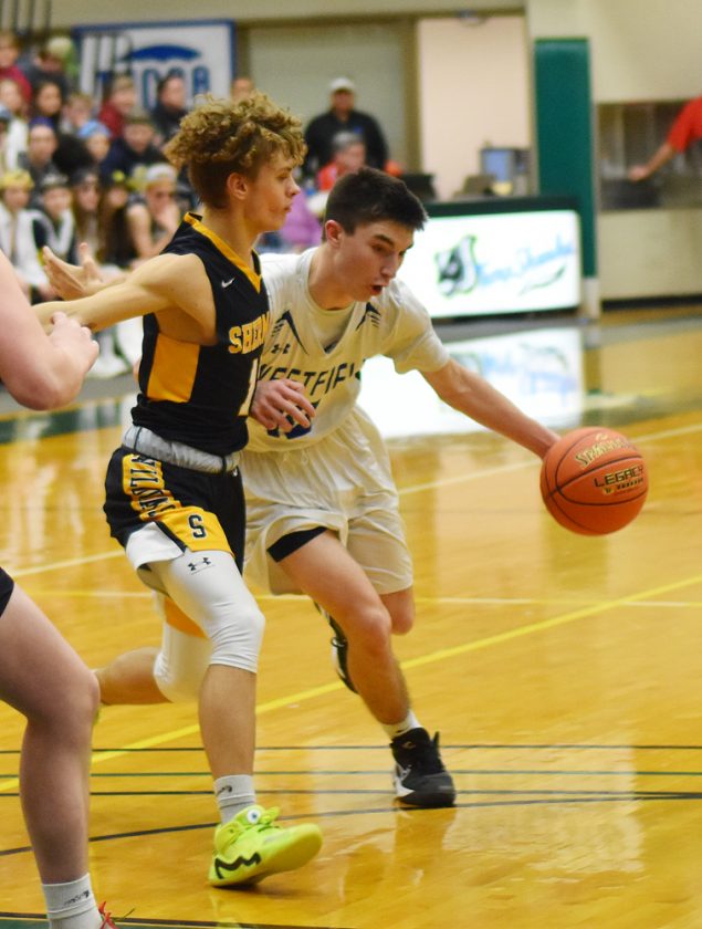 Westfield’s Darien Swanson, right, leads the Wolverines in virtually every statistical category, heading into Saturday’s Class D Far West Regional against Section V’s Avoca/Prattsburgh at Buffalo State Sports Arena. OBSERVER Photo By Scott Kindberg