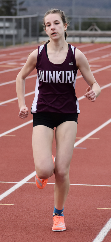 - OBSERVER Photo by Scott Kindberg Dunkirk’s Siera Porpiglia runs the 800 meters during Tuesday’s CCAA track and field meet against Southwestern.