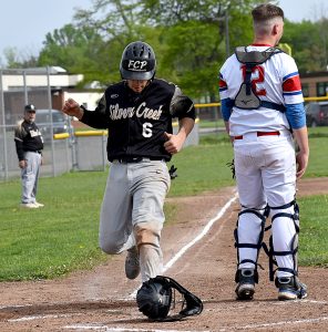 - OBSERVER Photo by Matt Spielman The Black Knights’ Gavin Borrello scores the first run of the game.