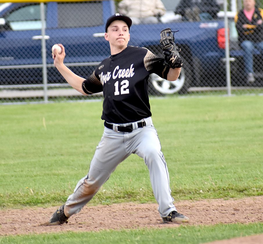 OBSERVER Photo by Matt Spielman Silver Creek/Forestville shortstop Shawn Kelly throws across the infield during Monday’s Section VI Class C prequarterfinal game against Cassadaga Valley in Silver Creek.