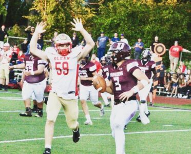 Both teams struggled with turnovers early, with Olean’s Mest throwing both of his interceptions in the first half, while Dunkirk fumbled twice — first by Sikes on fourth down on the opening drive, next by Quanteer Neallard on a botched pitch at the Olean 40-yard line. By the end of the night, all three Dunkirk fumbles — by three different players — came in Olean territory.