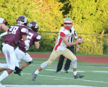- Olean quarterback Joe Mest avoids the Dunkirk pass rush. OBSERVER Photo by Braden Carmen.