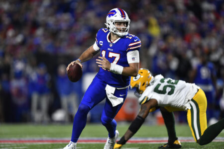 AP Photo Buffalo Bills quarterback Josh Allen (17) scrambles during the first half of an NFL game against the Green Bay Packers on Sunday in Orchard Park.