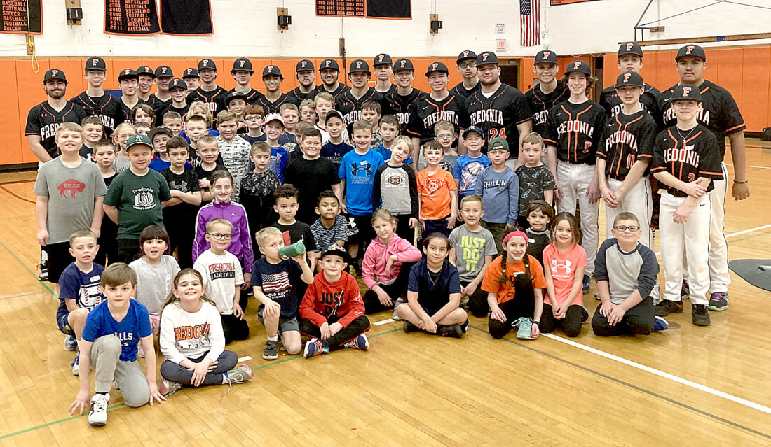 Fredonia’s baseball team will be traveling to Myrtle Beach, South Carolina, next week to take part in the Mingo Bay Baseball Classic. The Hillbillies, pictured above at their youth clinic last weekend, will take on Penn Yan at 2 p.m. Monday, Silverdale Baptist (Tenn.) at 11:30 a.m. Tuesday and Lee County (W. Va.) at 9 a.m. Wednesday. All three of the games will be at Carolina Forest High School.