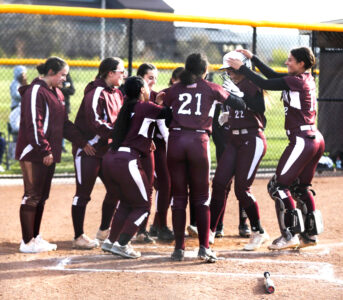 - Dunkirk celebrates a home run by Brooke Szymczak in Thursday’s CCAA Division 1 West game against Jamestown. OBSERVER Photo by Ashleigh Brown
