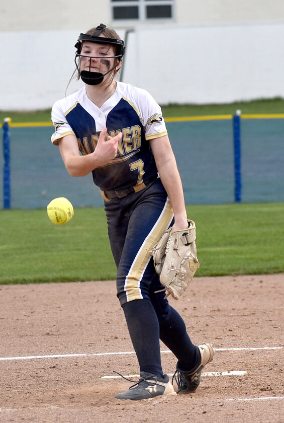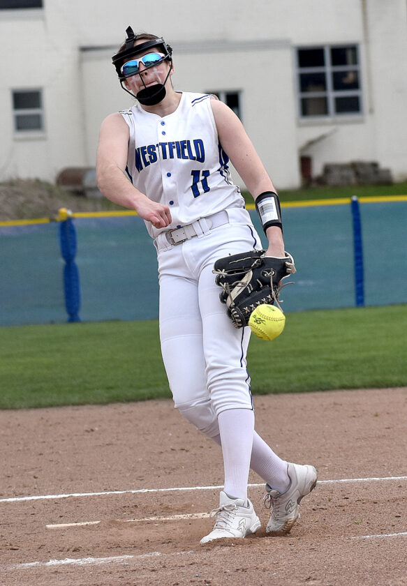 - Westfield’s Haleigh Dellow delivers to the plate during Tuesday’s nonleague game against Falconer in Westfield. OBSERVER Photo by Matt Spielman