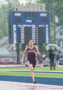- Dunkirk’s Michael Hanlon was a member of the Marauders’ winning relay. OBSERVER Photo by Tim Frank