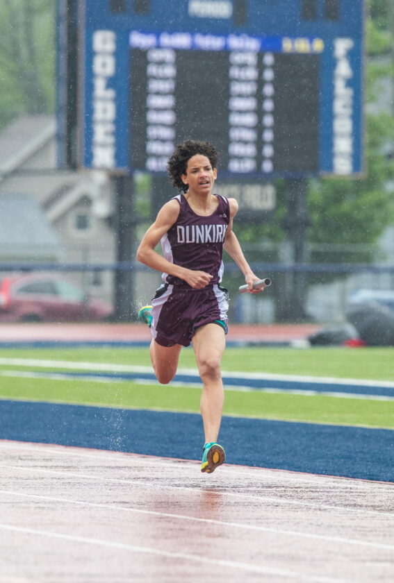 - Dunkirk’s Johnee Thomas was a member of the Marauders’ winning relay. OBSERVER Photo by Tim Frank