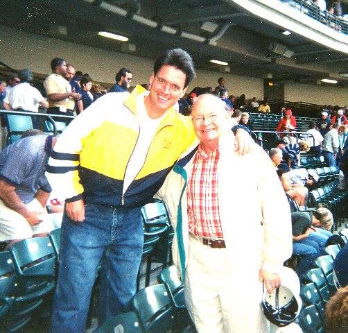 Submitted Photo In this 2002 photo, Scott Kindberg and his father, Gunnard, pose for a photo while attending a Major League Baseball game in Cleveland.