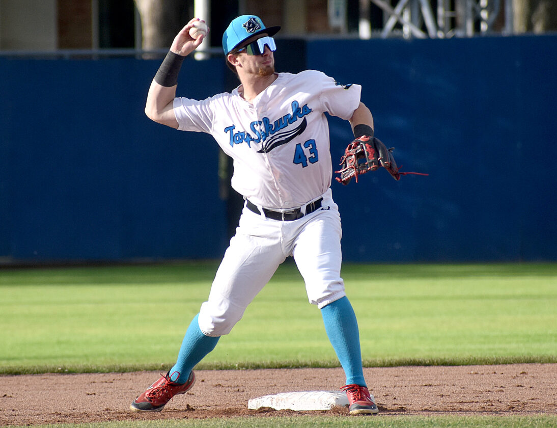 - OBSERVER Photo by Matt Spielman Jamestown Tarp Skunks shortstop Grady Mee throws to first base during Saturday’s Perfect Game Collegiate Baseball League game against the Newark Pilots at Diethrick Park in Jamestown.
