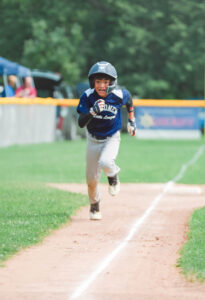 - Falconer’s Jayce Stewart runs down the third-base line. OBSERVER Photo by Ashleigh Brown