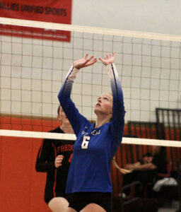 Charly Mathews added 6 kills and 2 blocks in her Westfield varsity volleyball debut, replacing multi-sport star Haleigh Dellow in the lineup.