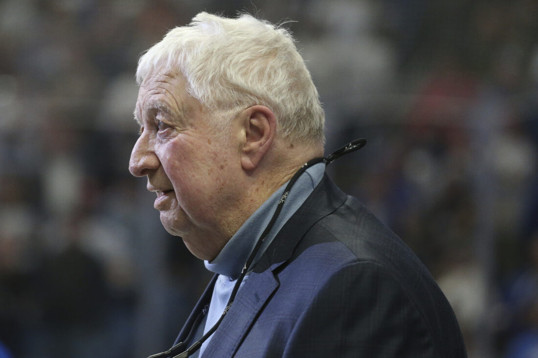 AP Photo In this April 29, 2022 file photo, longtime Buffalo Sabres play-by-play announcer Rick Jeanneret takes the ice during a ceremony honoring his career after the team’s NHL game against Chicago.
