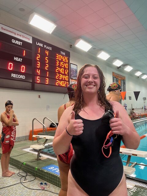 100y breaststroke: Katie DeGroff (O/P/F), Diana Li (O/P/F), Gigi Novelli (F/D/F/PV). T–1:24.39