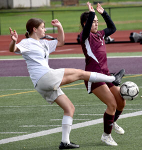 Then, off a harmless throw-in along the sideline from North Collins freshman Hannah Jasinski, Jimerson let a high shot go from 25 yards out that deflected off Marsh’s hands into the goal for the 1-0 lead.