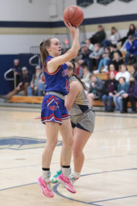 Cassadaga Valley’s Andrea Johnson puts up a shot in Friday’s Chautauqua-Cattaraugus Athletic Association Division 1 East girls basketball game at Falconer. Photo courtesy of Steve Garvey