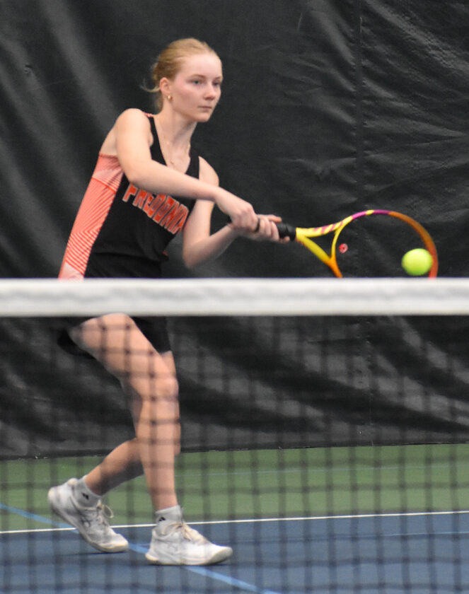 - OBSERVER Photo by Scott Kindberg Chautauqua Lake’s Mary Marshaus competes on the first day of singles competition in the CCAA girls tennis championships at the Lakewood YMCA.