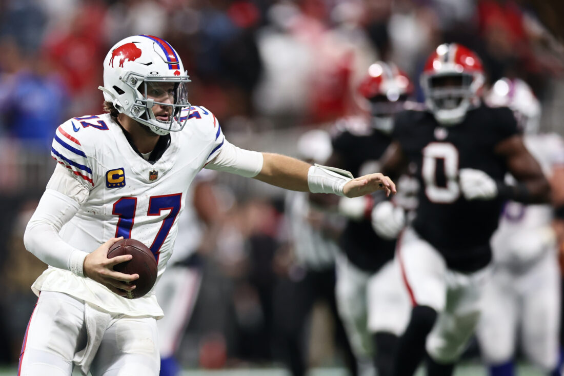 AP Photo Buffalo Bills quarterback Josh Allen (17) runs during the second half against the Atlanta Falcons on Oct. 13 in Atlanta.