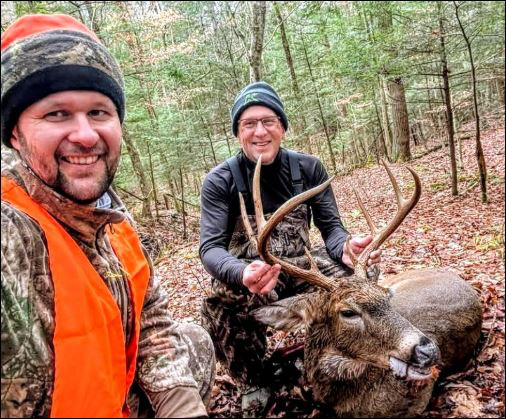 Brian Stedman, right, from S&S Taxidermy in Springville, took a nice buck on opening day. Stedman is every outdoor person’s friend when repairs are needed for their archery or firearm gear, and for friendly advice. Submitted Photo