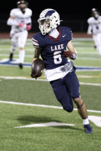 Chautauqua Lake/Westfield/Brocton’s Devin Hewes runs in the open field during the Section VI Class C quarterfinals against Akron in Mayville on Friday night. Photo courtesy of Cody Jacobson