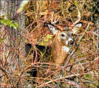 The deer seem to understand that they blend right in with their background when they sense others are pursuing them. The regular (firearm) NYS Southern Zone Big Game Hunting Season will end this Sunday, Dec. 7, at 30 minutes after sunset. Photo courtesy of James Monteleone