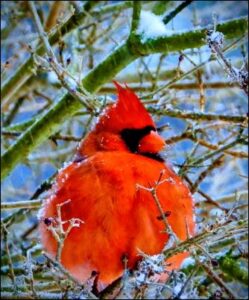There is something special about watching a beautiful red cardinal on a morning before impending weather changes – birds and wildlife will seek safe refuge the next few days. Photo by James Monteleone