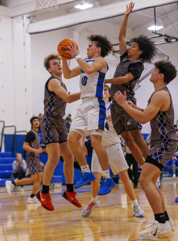 During the huddle in between quarters, Eagles head coach Devin Pope asked his team to cut the deficit to 10. They did even better, opening the fourth on a 10-0 run that included a pair of 3-pointers from senior Nick Jacobson to make it 47-41 with 4:13 remaining.
