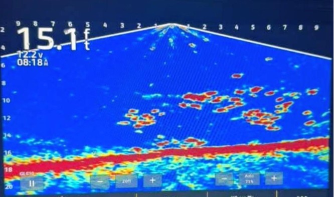 The fish on Chautauqua Lake have been moody, with some days being quiet and other days hectic with tight lines and a heavy harvest. Modern sonar can see the fish movements and help with finding fish. Photo courtesy of Fishing with Dad, LLC