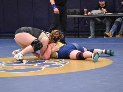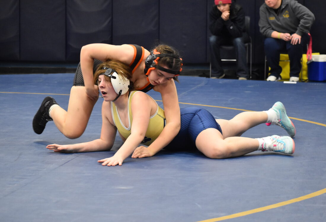 Frewsburg won its first three matches by pinfall. Emelyn Campion started with a pin over Claire Bentham at 100 pounds, Teagan Nazario earned a second-round pin over Shaneyska Torres-Soto and Summer Winters quickly pinned Mallory Mikula for Frewsburg.