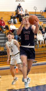 OBSERVER Photo by Matt Spielman Chautauqua Lake’s Asher Olson puts up a reverse layup against Falconer during the opening round of the Frewsburg Holiday Tournament on Friday in Frewsburg.