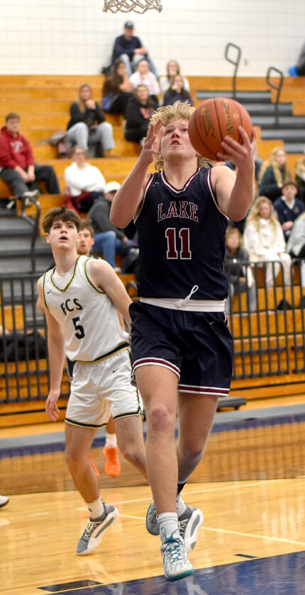- OBSERVER Photo by Matt Spielman Chautauqua Lake’s Asher Olson puts up a reverse layup against Falconer during the opening round of the Frewsburg Holiday Tournament on Friday in Frewsburg.