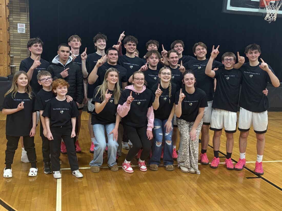 OBSERVER Photo by Braden Carmen Members of the Forestville girls and boys basketball celebrate Carliene Sliwa’s accomplishment of becoming the top girls scorer in school history with 1,412 career points.