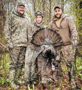 - Young Jack Uhteg, middle, mentored by Adam Nezel, left, and Ryan Van Lew, bagged a nice bird during youth hunting weekend last Sunday. The birds are out there. Photo courtesy of Ryan Van Lew
