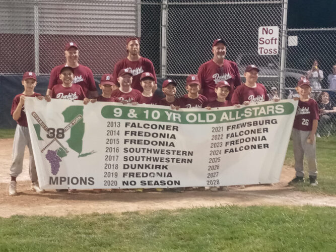 Dunkirk won the District 38 Little League 8-10 All-Stars Tournament championship with a 13-6 victory over Southwestern at the Dunkirk Little League Complex to win the title for the first time since 2018. Members of the team included James Maldonado-Gilbert, Zay Santiago, Asa Watts, Michael ...